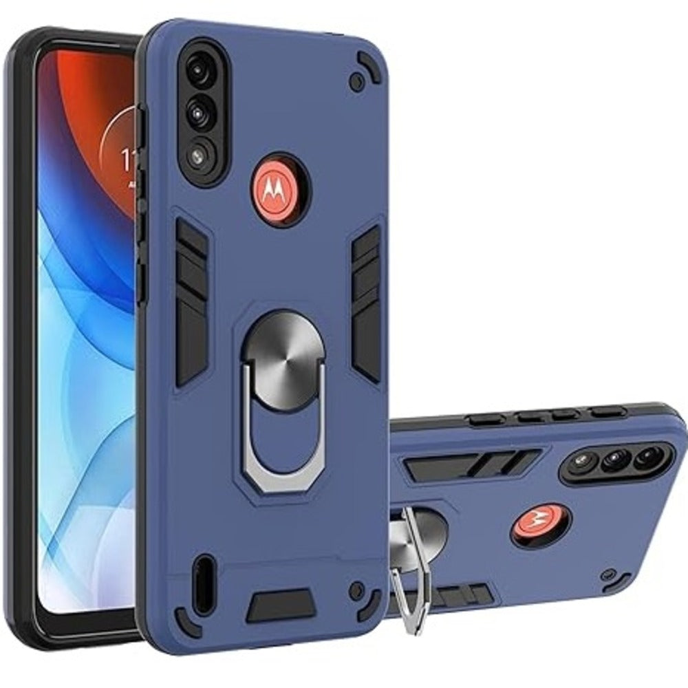 Funda Case para Motorola Moto E7 Power con Anillo Metálico Azul Antishock