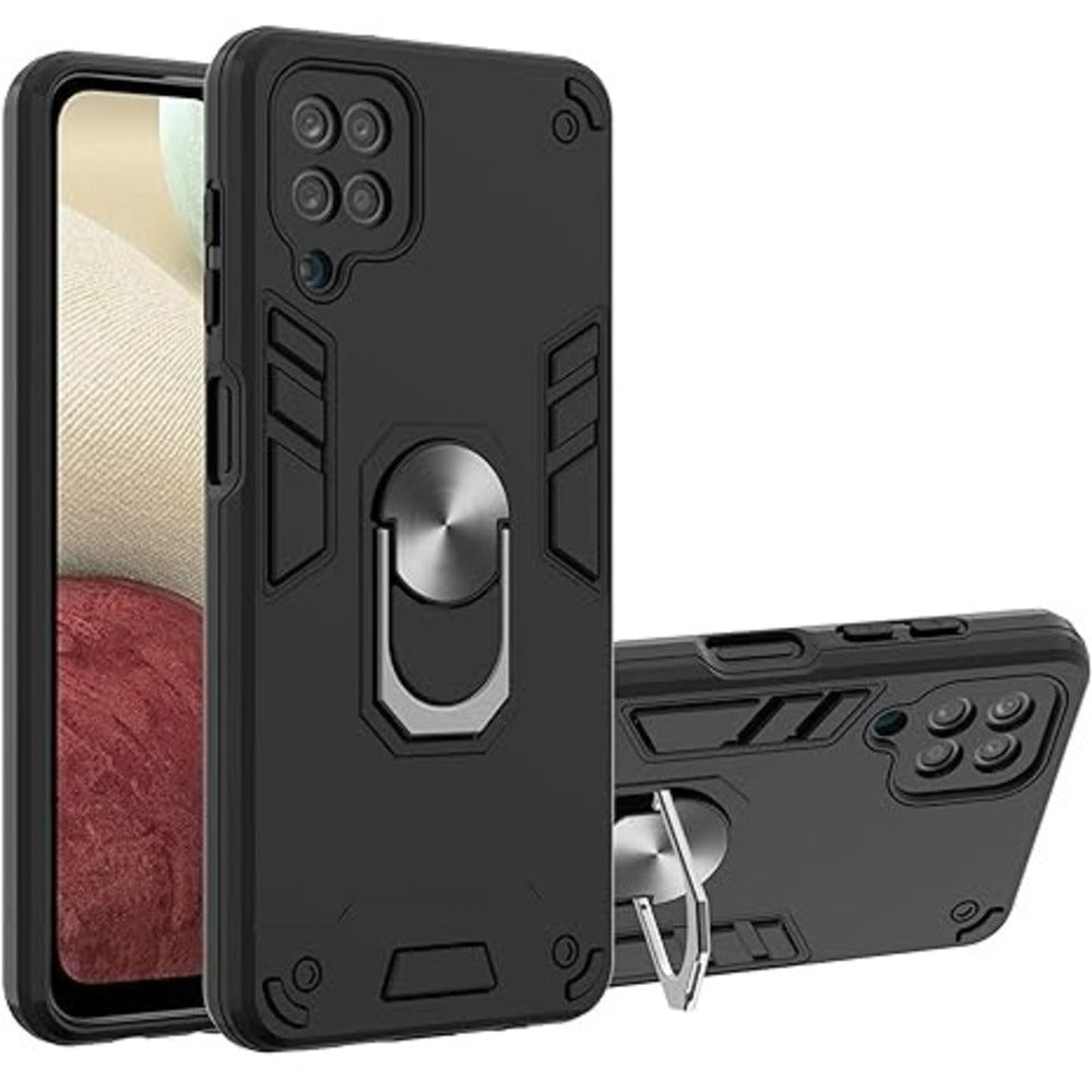 Funda Case para Samsung A12 con Anillo Metálico Negro Antishock