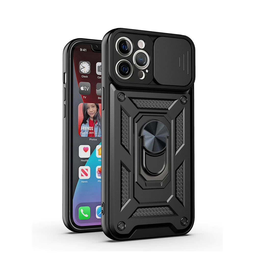 Funda Case para Samsung A35 5G con Anillo Holder Metálico y Protector de Cámara Deslizante Color Negro